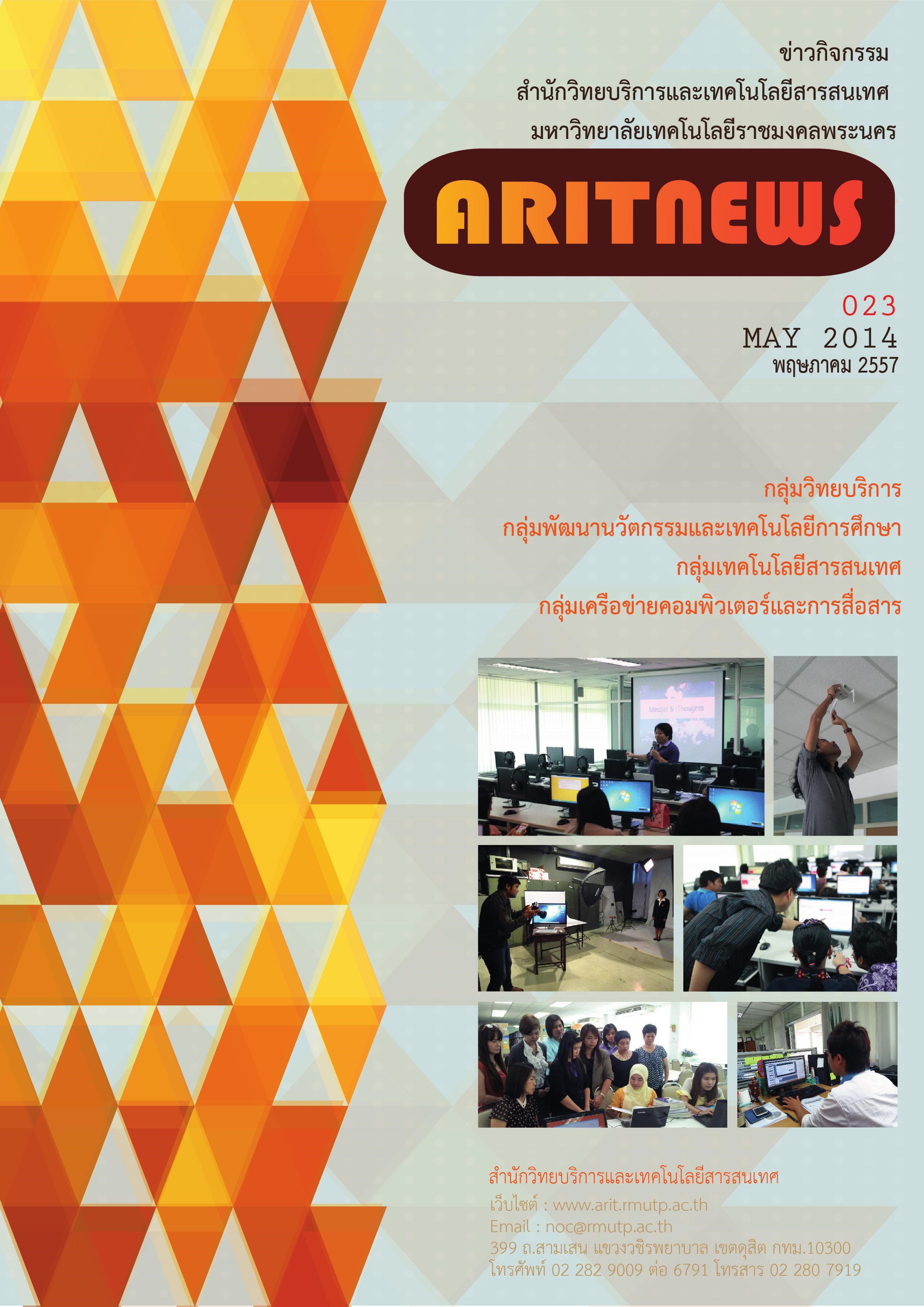 วันที่ 5 มิถุนายน 2557 …Studio News… เอกสารข่าวกิจกรรม สำนักวิทยบริการเละเทคโนโลยีสารสนเทศ” ฉบับที่ 23 ประจำเดือน พฤษภาคม 2557 |