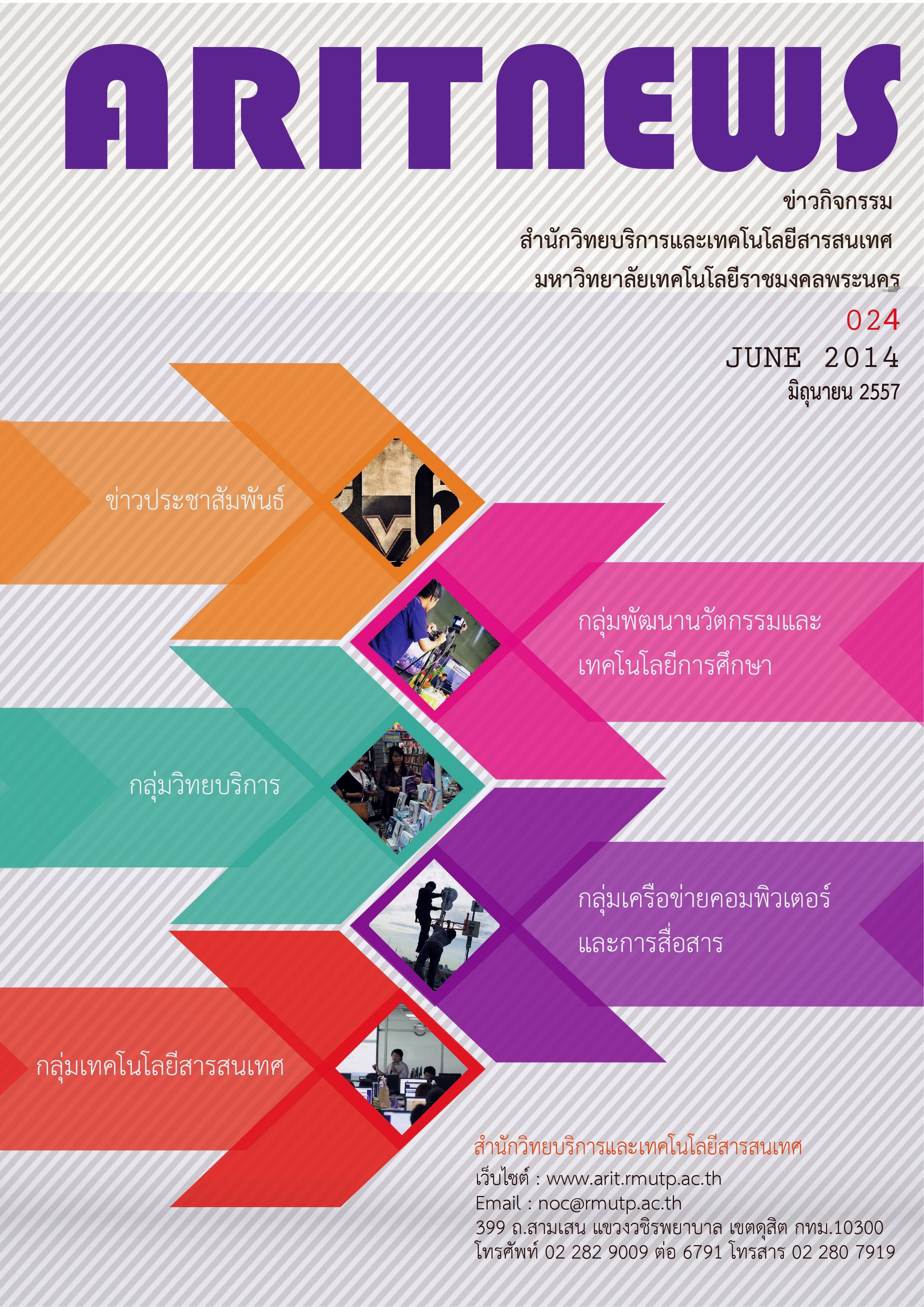 วันที่ 4 กรกฏาคม 2557 …Studio News… เอกสารข่าวกิจกรรม สำนักวิทยบริการเละเทคโนโลยีสารสนเทศ” ฉบับที่ 24 ประจำเดือน มิถุนายน 2557 |