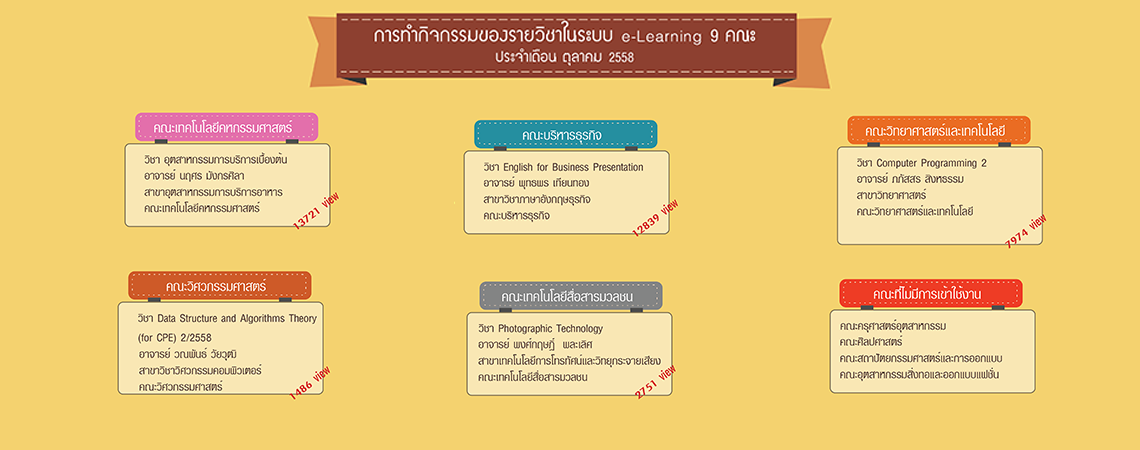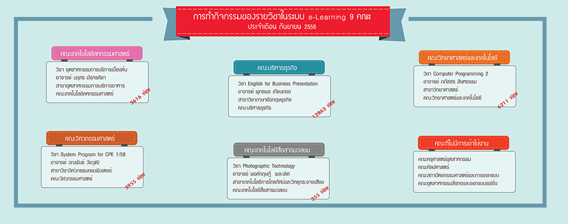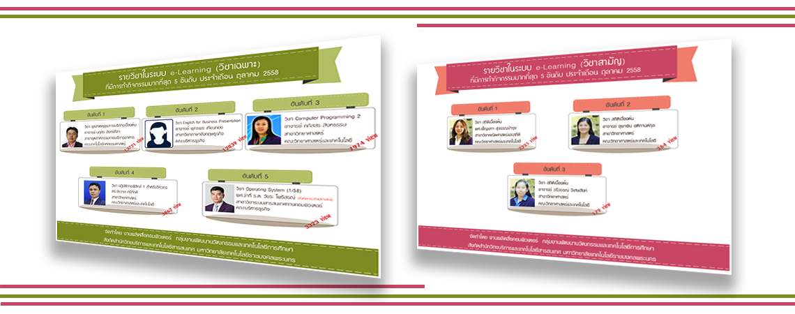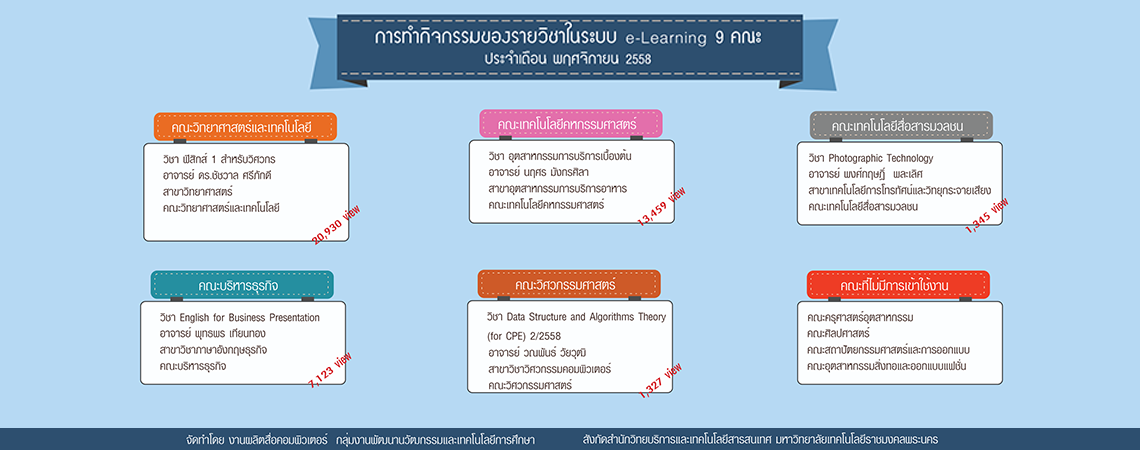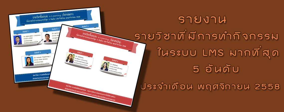 รายงานรายวิชาที่มีการทำกิจกรรมในระบบ LMS มากที่สุด 5 อันดับ ประจำเดือน พฤศจิกายน 2558