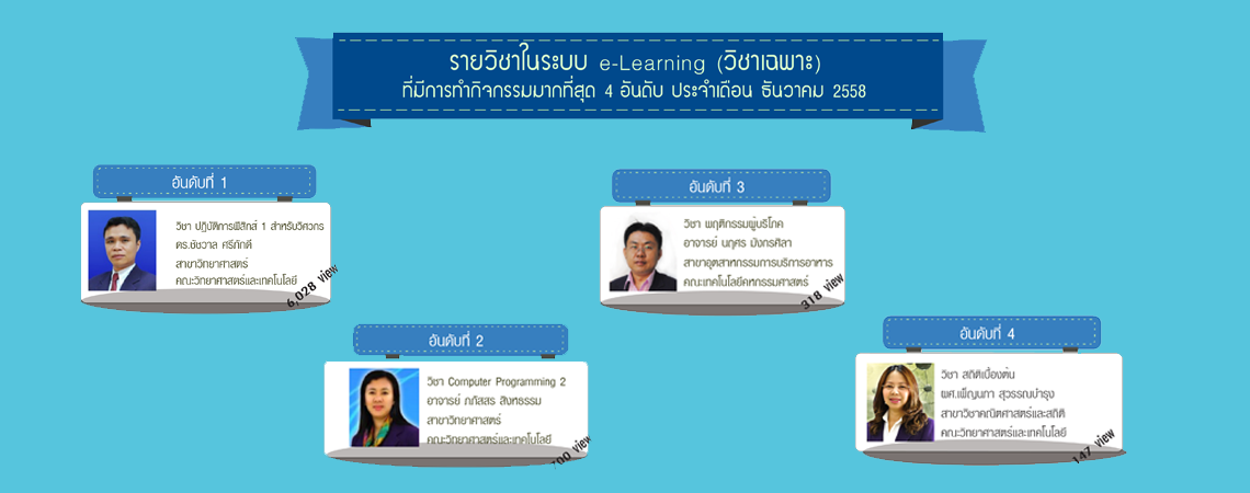 ขอแสดงความยินดีกับผู้ได้รับรางวัล “อาจารย์ผู้มีผลงานด้านการพัฒนาการสอนด้วยสื่อ e-Learning ประจำปี พ.ศ. 2558”